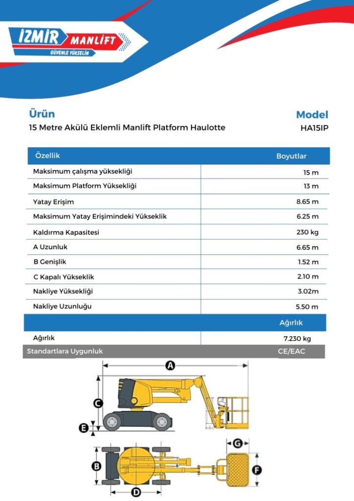 15 Metre Akülü Eklemli Manlift Platform Haulotte HA15IP