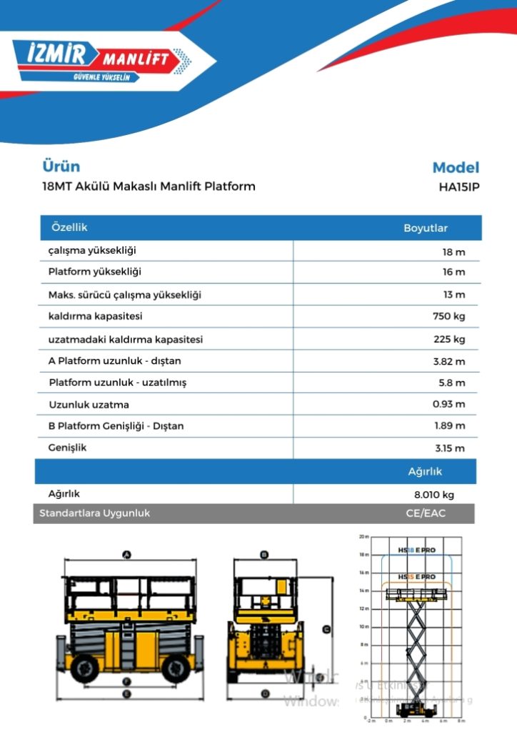 18 Metrelik Makaslı Akülü Platform Aliağa Manlift Kiralama