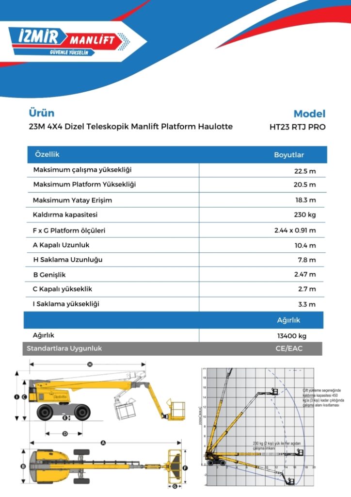 Aliağa 23 Metrelik 4X4 Haulotte HT23 RTJ PRO Dizel Teleskopik Manlift Platform